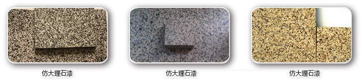 ●產品優勢 1、環保節能 可替代資源日趨稀少的寶貴石材,還能配合外墻外保溫材料進行專業和仿理石裝飾。 2、優異的抗龜裂性能 具有一定的柔韌性,使其能非常有效地遮蓋墻面上的細小裂紋,保持涂層牢固和光滑。 3、高仿真性 在色彩上模仿天然理石,視覺上可以以假亂真,達到巧奪天工,勝過天然的效果。 4、施工周期短 使用專業噴槍,一次成型,故可大大節省施工時間,縮短工期。 5、超強的自潔功能 可使建筑裝飾墻面常久如新。 6、耐清洗 抗刮痕 涂層具有優異的耐磨性和耐清洗性。自潔性能極好不粘灰塵。 7、超強耐候性 不論在普通環境下,還是在酸雨侵蝕等惡劣環境下,涂層都具有極強的適應力和抵抗力。使用壽命20年以上! 8、裝飾效果多樣 可采用平涂、砂壁中涂、真石漆、浮雕中涂等,同時選用高光、半光、啞光罩光漆來達到不同的裝飾效果。