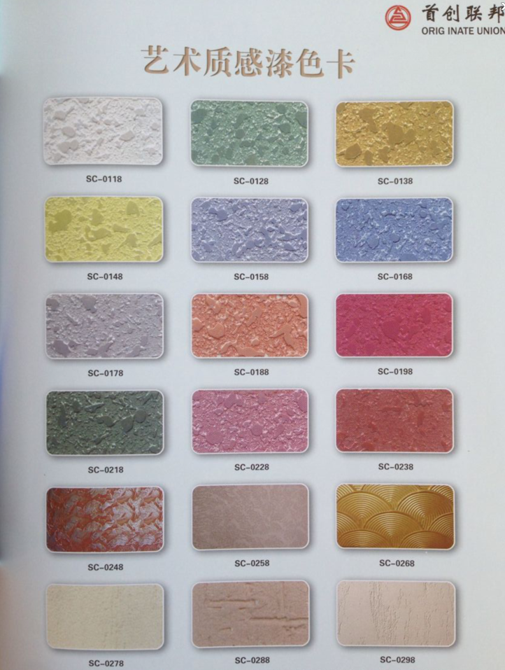 ●產品介紹 首創藝術質感漆是由氟碳樹脂加超耐候金屬顏料、多功能進口助劑等制成高級裝飾漆。特有一定的藝術質感,涂膜具有較長的壽命和抗紫外線功能,附著力強,硬度好、耐腐蝕性優,易清洗及施工簡便之優點。它因極高性能、色彩多樣化、施工簡易而倍受歡迎。是賓館、家庭裝飾、電視墻、辦公場所的背景形象墻首選產品。●產品特點 1、是目前在國內涂料產品行業領先的質感涂料,有極佳的裝飾性。 2、優異的抗堿性及卓越的耐候性。 3、涂層具有良好的防水透氣性能(如皮膚效果)。 4、具有自潔功能,優異的殺菌抗藻性能。 5、極強的附著力,抗老化達二十年以上。